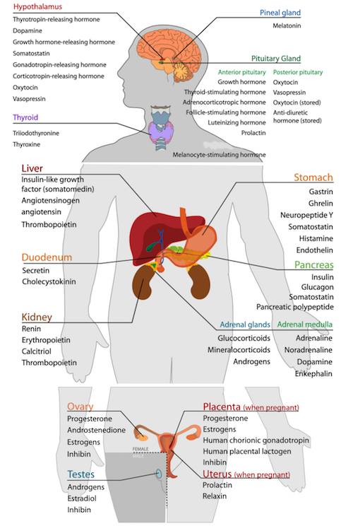 Figure: Secondary endocrine glands throughout the body and mind